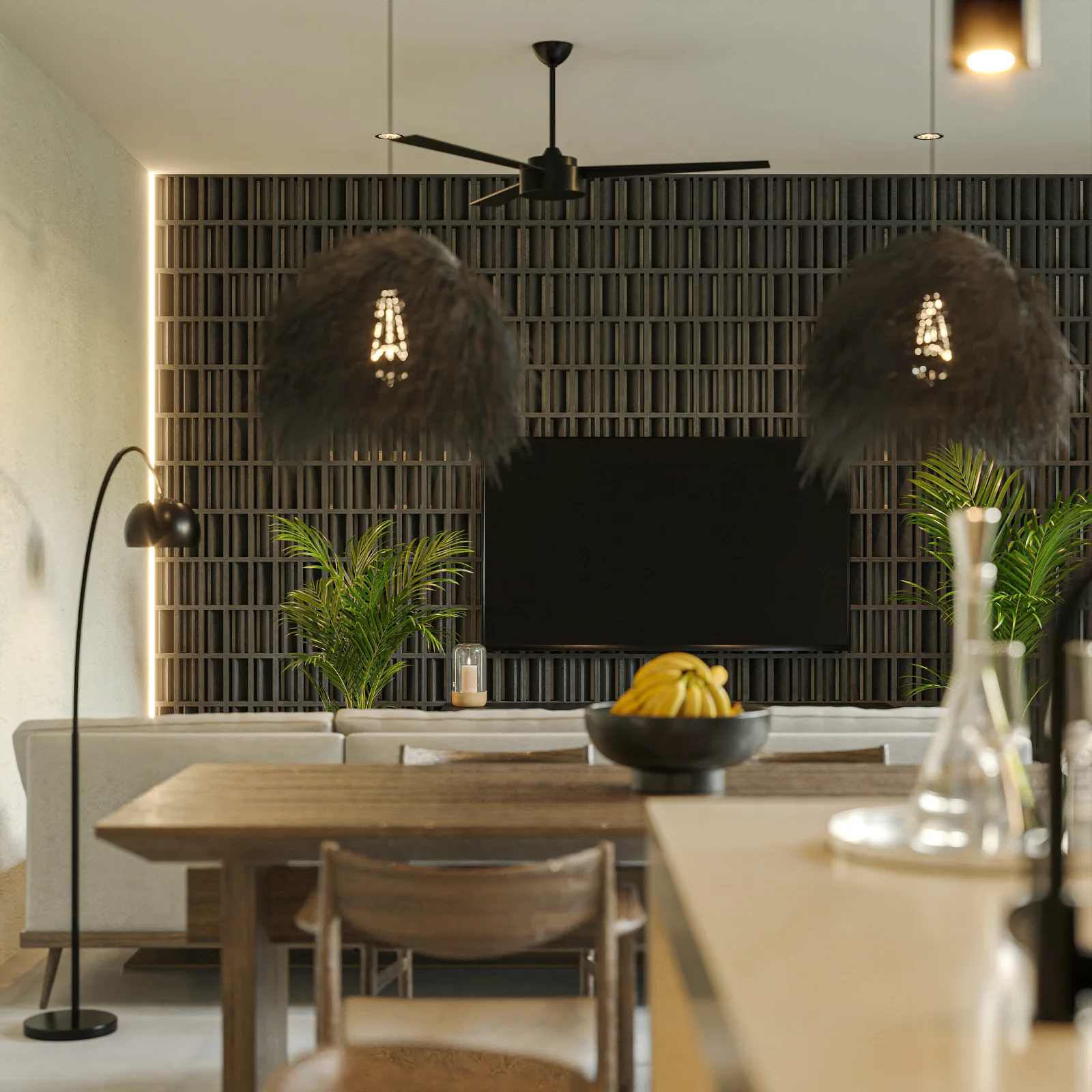 For a touch of Balinese elegance, consider opting for a teakwood-covered living room ceiling. This customizable feature brings warmth and luxury to your living space, showcasing the natural beauty of local materials.